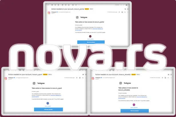 Juče oko 11.30 časova privremeno su suspendovani Instagram nalozi portala Nova.rs (nova.rs_portal, nova.rs_show i nova.rs_sport), kao i privatni nalog administratora navedenih profila, dok je Instagram nalog portala Radar trajno suspendovan.