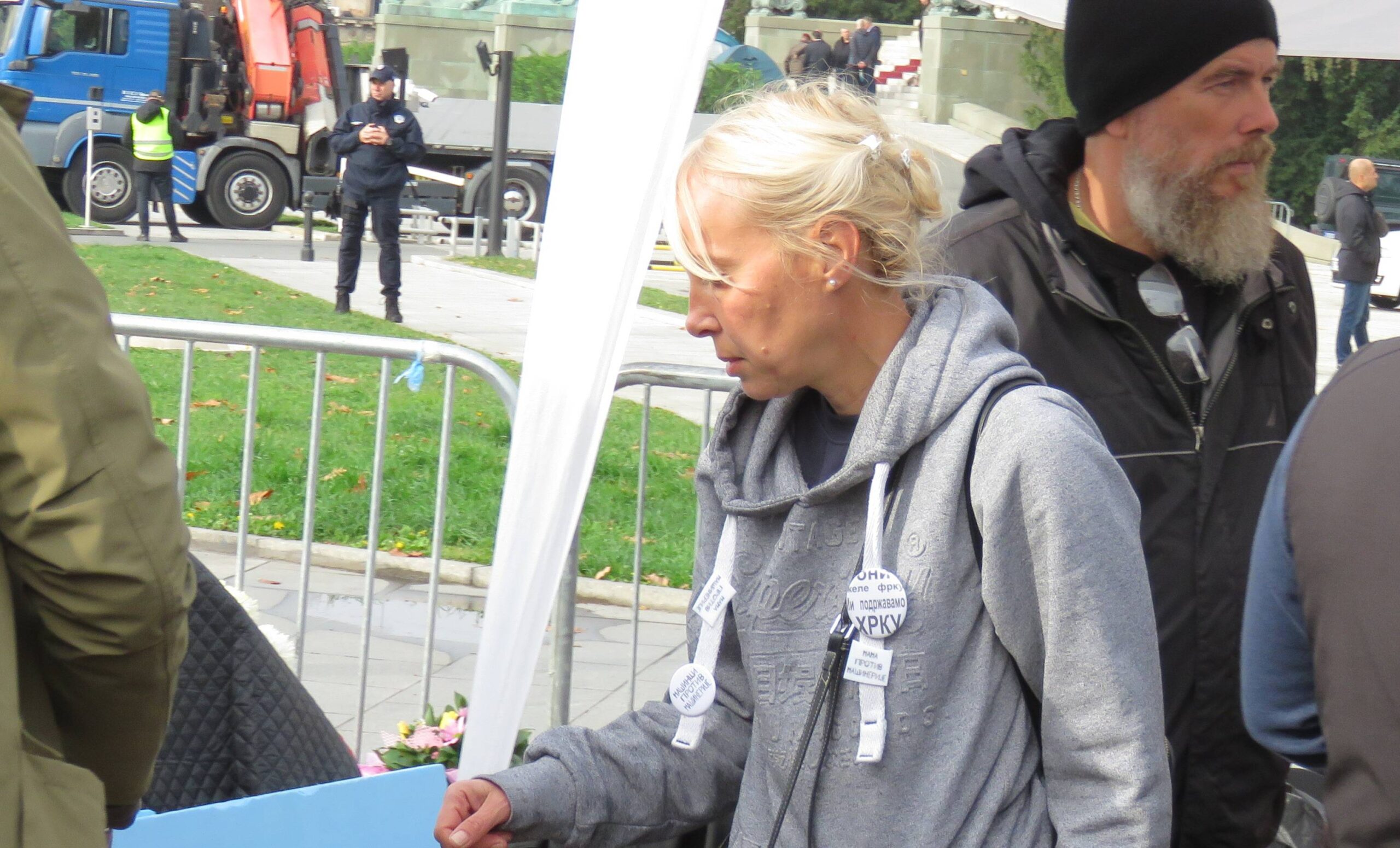 Hrka štrajkuje glađu deveti dan kod ograde koja okružuje šatorsko naselje pristalica vlasti s obezbeđenjem policije, nazvano “Ćacilend”, jer je policija nije pustila da prođe do stepeništa na ulazu u Dom Narodne skupštine gde je želela da bude tokom štrajka.